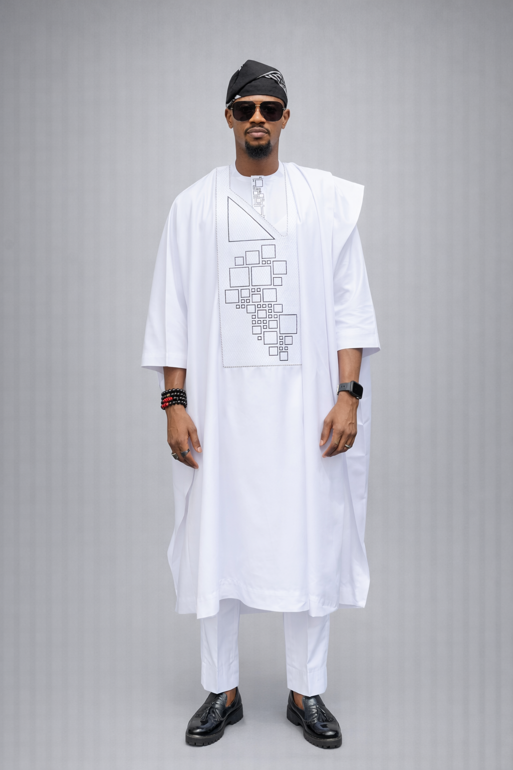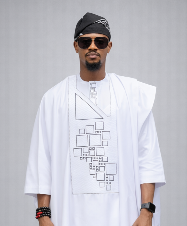 The agbada piece has a patterned white embroidery design (Monogram),