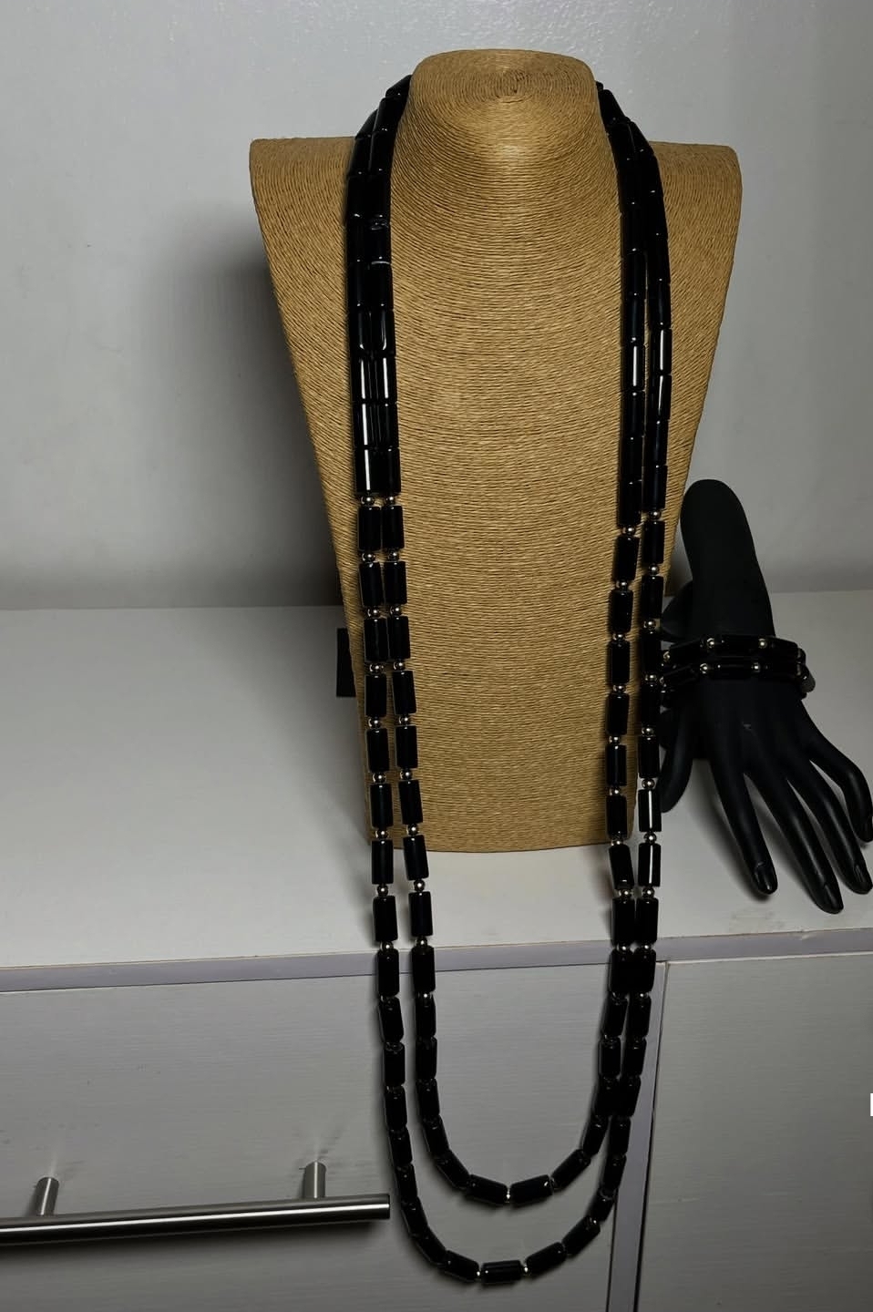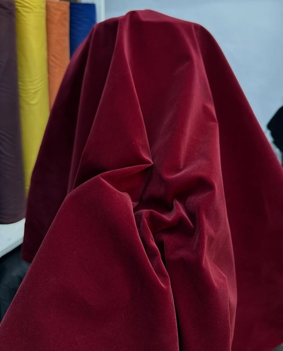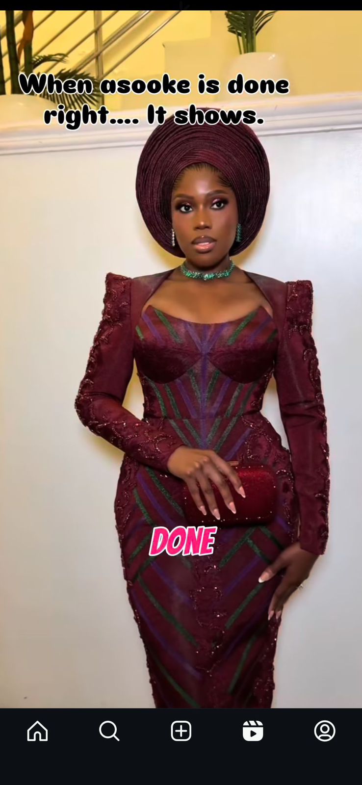 A burgundy agbada piece, a danshiki top, a matching trousers, and a bendable cap; The agbada has huge black suede facing (with all black beading), the danshiki, and the cap all have the same spec of embellishment, the trousers and the cap have embroidery design (Black – Manual).
